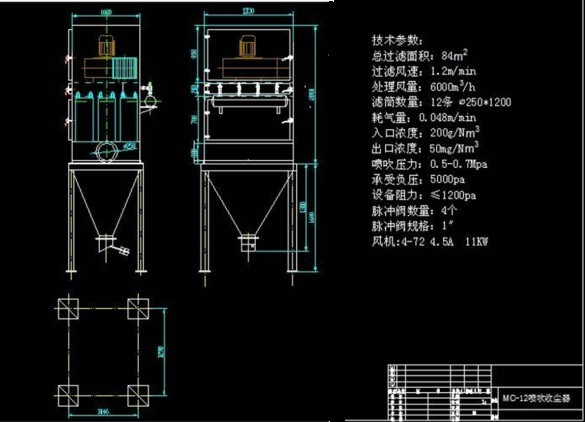 下面給大家介紹一下MC-120型脈沖布袋除塵器的技術(shù)參數(shù):