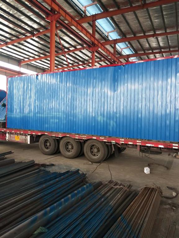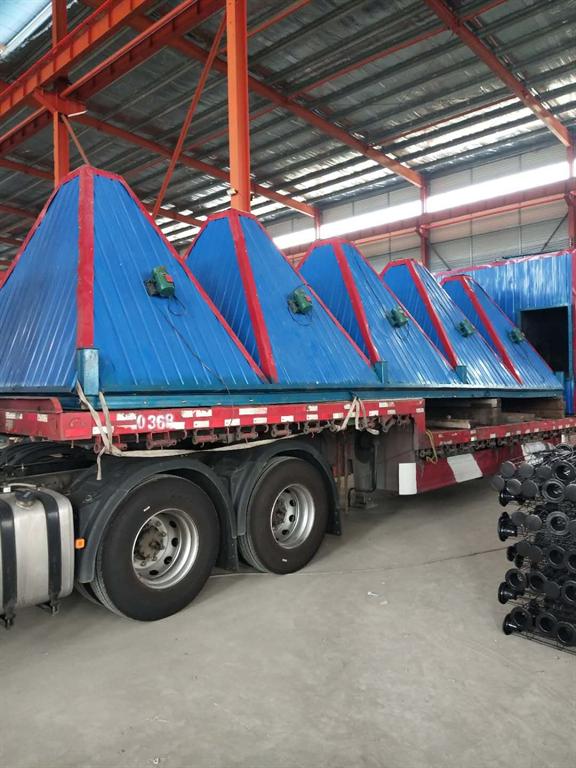,型號(hào)90-5,目前此除塵器設(shè)備已經(jīng)制作完成了,因?yàn)槌龎m器的腿子安裝起來(lái)已經(jīng)_高了,因此在發(fā)貨的時(shí)候沒(méi)有焊接好,到達(dá)客戶現(xiàn)場(chǎng)后,請(qǐng)李經(jīng)理在找?guī)孜籣的焊工進(jìn)行焊接一下,除塵器90-5,17米的大板車發(fā)了一車,因?yàn)榘遘嚿弦呀?jīng)裝滿沒(méi)有空閑的位置,因此配套55KW的風(fēng)機(jī)又單獨(dú)走的物流。預(yù)計(jì)風(fēng)機(jī)和除塵器的到貨時(shí)間可能會(huì)差一天,在這里提前向李經(jīng)理說(shuō)明一下,請(qǐng)李經(jīng)理準(zhǔn)備好一臺(tái)12噸的吊車,做好接貨 準(zhǔn)備。司機(jī)在到前會(huì)提前聯(lián)系您的。